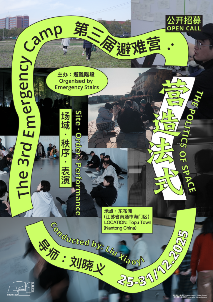 我们延续“避难营不是表演训练,而是创意生成、方法论分享与网络搭建的平台”的初心,以「营造法式」为年度主题,聚焦场域·秩序·表演的创作方法论。从场地到城市、制作到秩序出发,走入真实空间,关注在地性、叙事与批评的相互牵引。